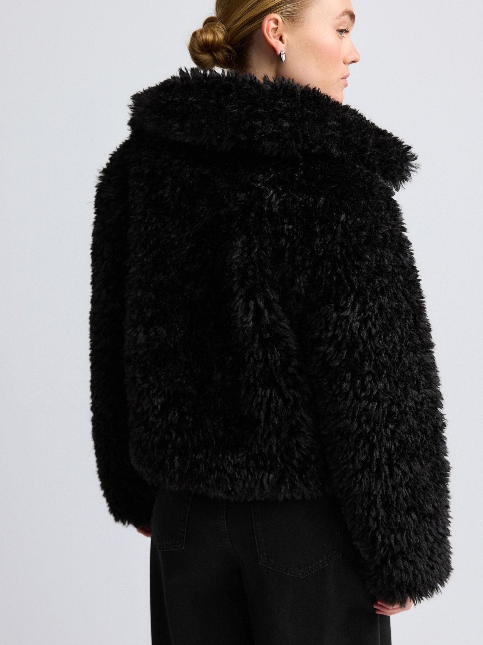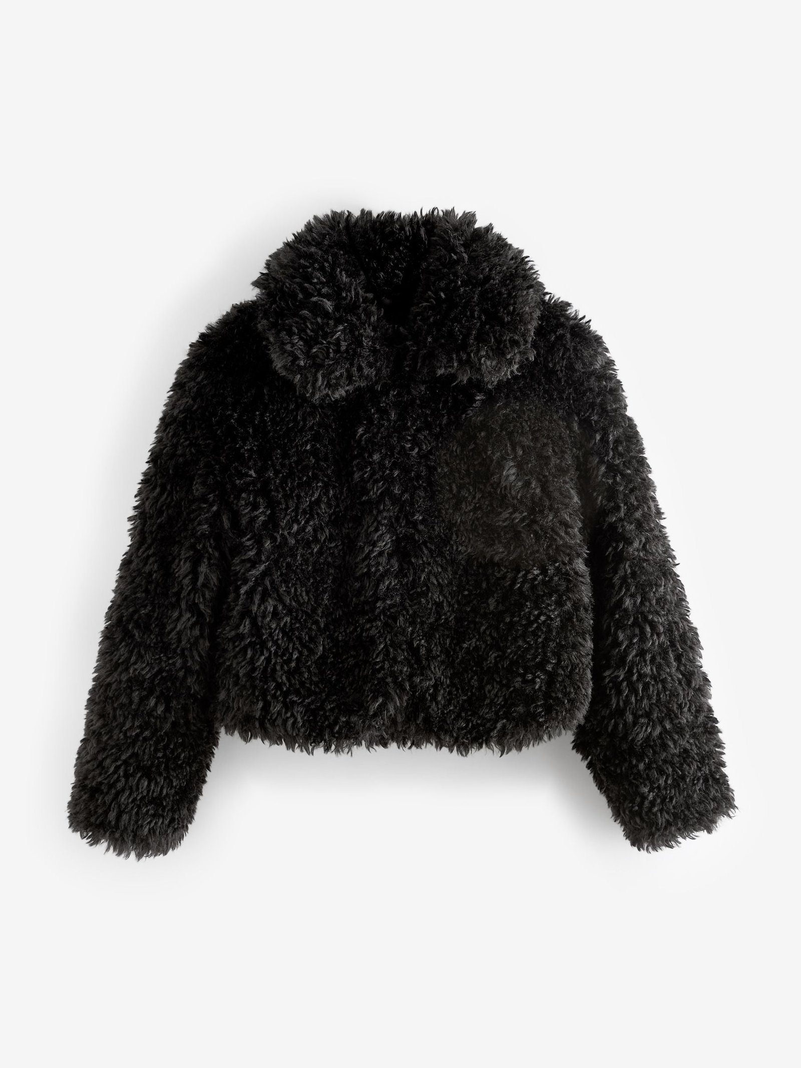 Cut to a shorter boxy fit, this cosy jacket is made from a soft faux fur fabric with an oversized collar, featuring a subtle hook and eye fastening and long sleeves. Easy to dress up or down, it can be worn with a casual or smarter outfit.Regular sizingShort, boxy fitFaux fur fabricHook and eye fasteningOversized collar|Regular centre back neck to hem 19.5″ x 49.5cm.