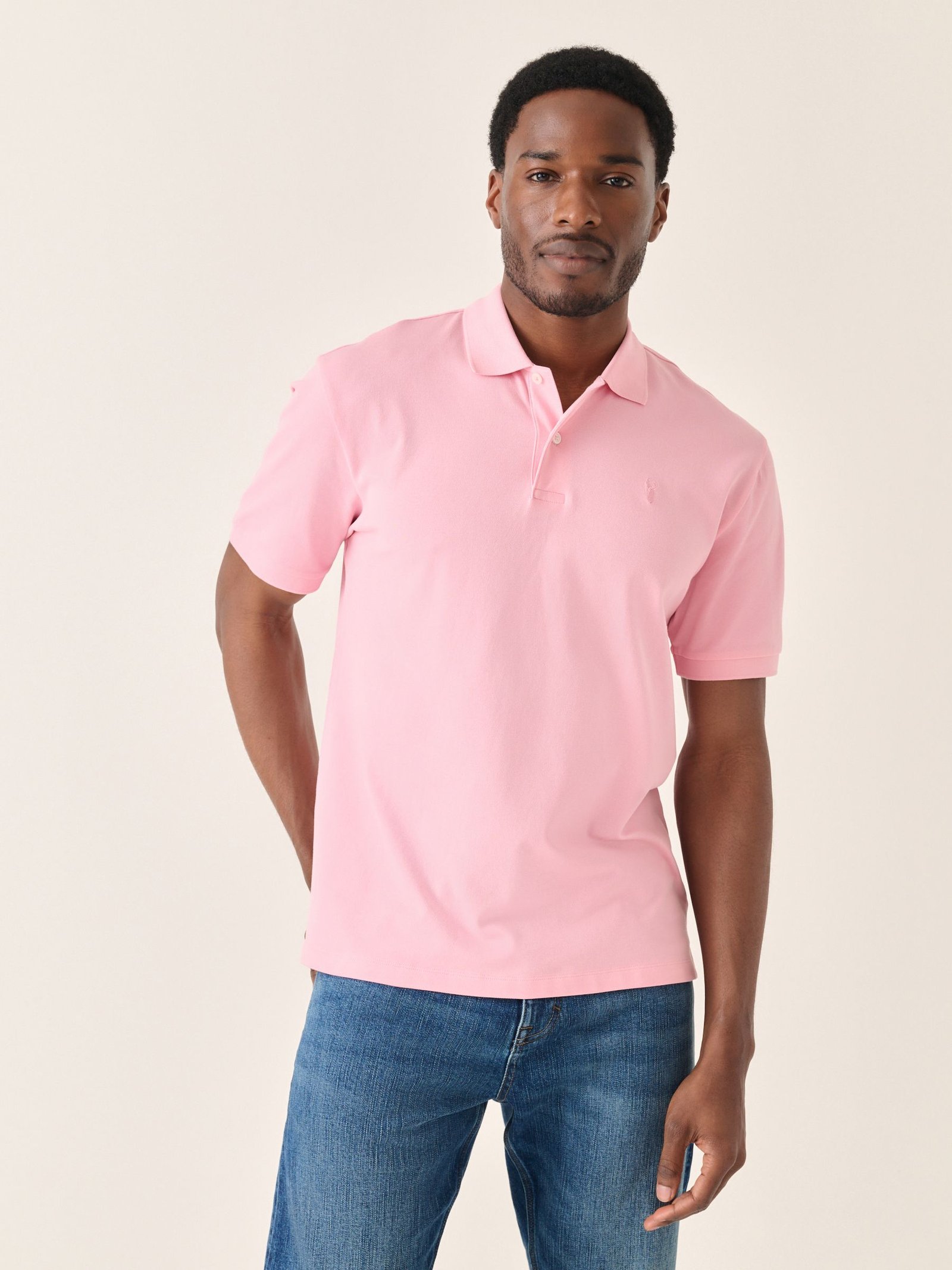 A wardrobe staple, our polo shirt is made from soft cotton pique for your comfort throughout the day. This classic silhouette can be dressed up or down to suit the occasion and boasts a traditional button-fastened placket on the neck, ribbed collar and cuffs and a stag embroidered detail on the chest. Smart casual stapleSoft constructionDual-button neckPointed collarShort sleeve