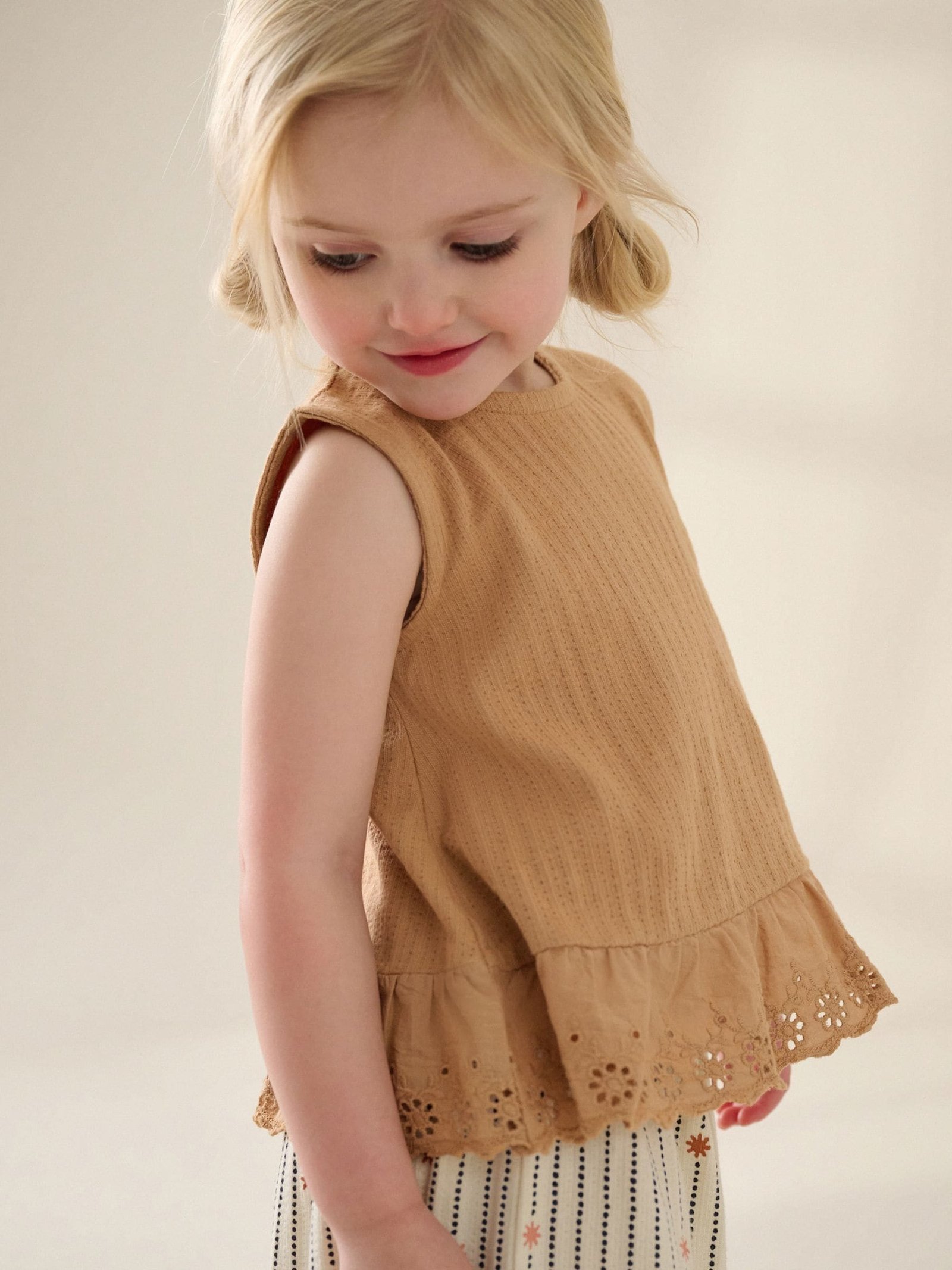 Neutral/Tan Frill Vest and Wide Leggings Set (3mths-7yrs)